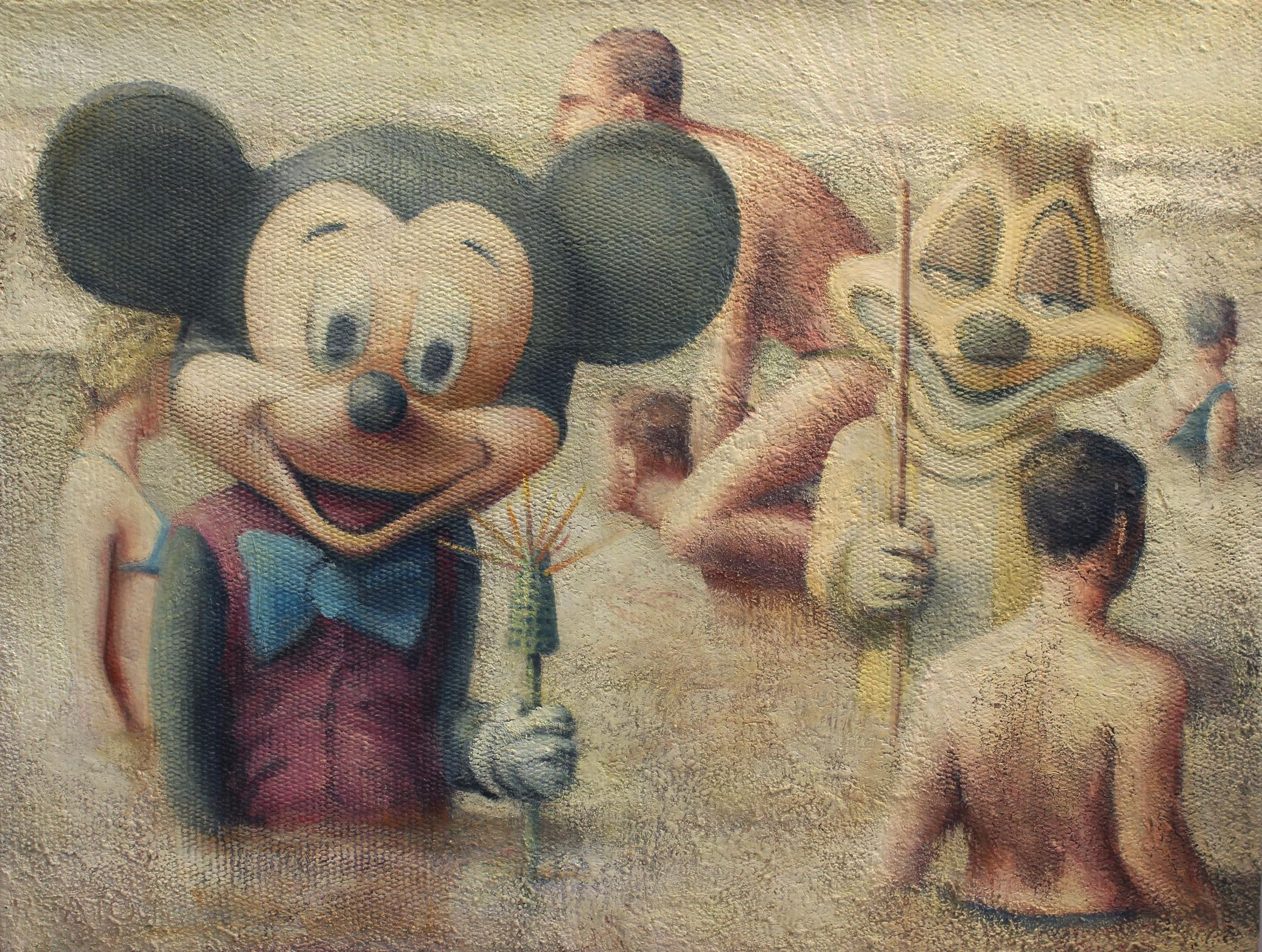 Mickey & Suricata – 183×148 – Mixta sobre arpillera y tablero – 2004